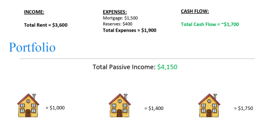 And it gets even better. The $4150 number is before taking into account the fact that about $2000 of principal is being automatically paid off on these three loans per month, or that they are appreciating in value at an expected $3000 per month based on expected inflation alone. And thanks to US tax laws regarding property depreciation, a large portion of this cashflow arrives completely tax-free.